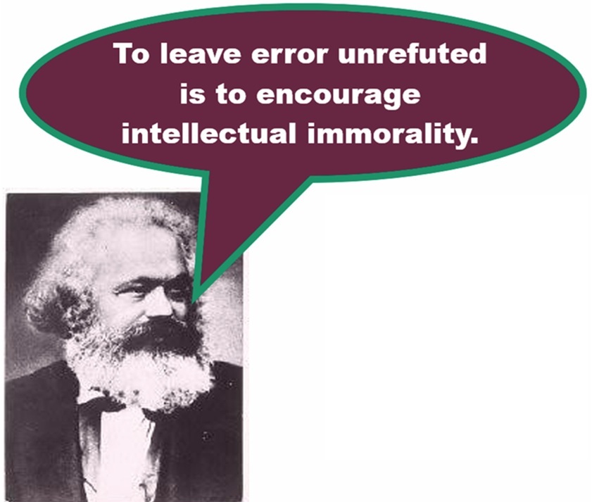 “To leave error unrefuted is to encourage intellectual immorality,” as Marx reportedly said. But even though refuting error is morally obligatory, I have learned the hard way that it is almost always a thankless task. Authors don’t take kindly—to put it mildly—to refutation of their errors, nor do their fans, nor do people who want to remain neutral, neither pro- nor anti-truth.