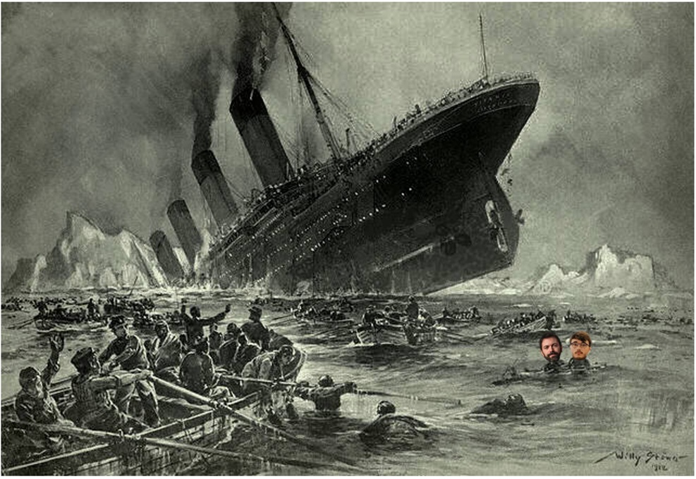 (Background image: The Sinking of the Titanic, by Willy Stöwer, Magazine Die Gartenlaube.)
