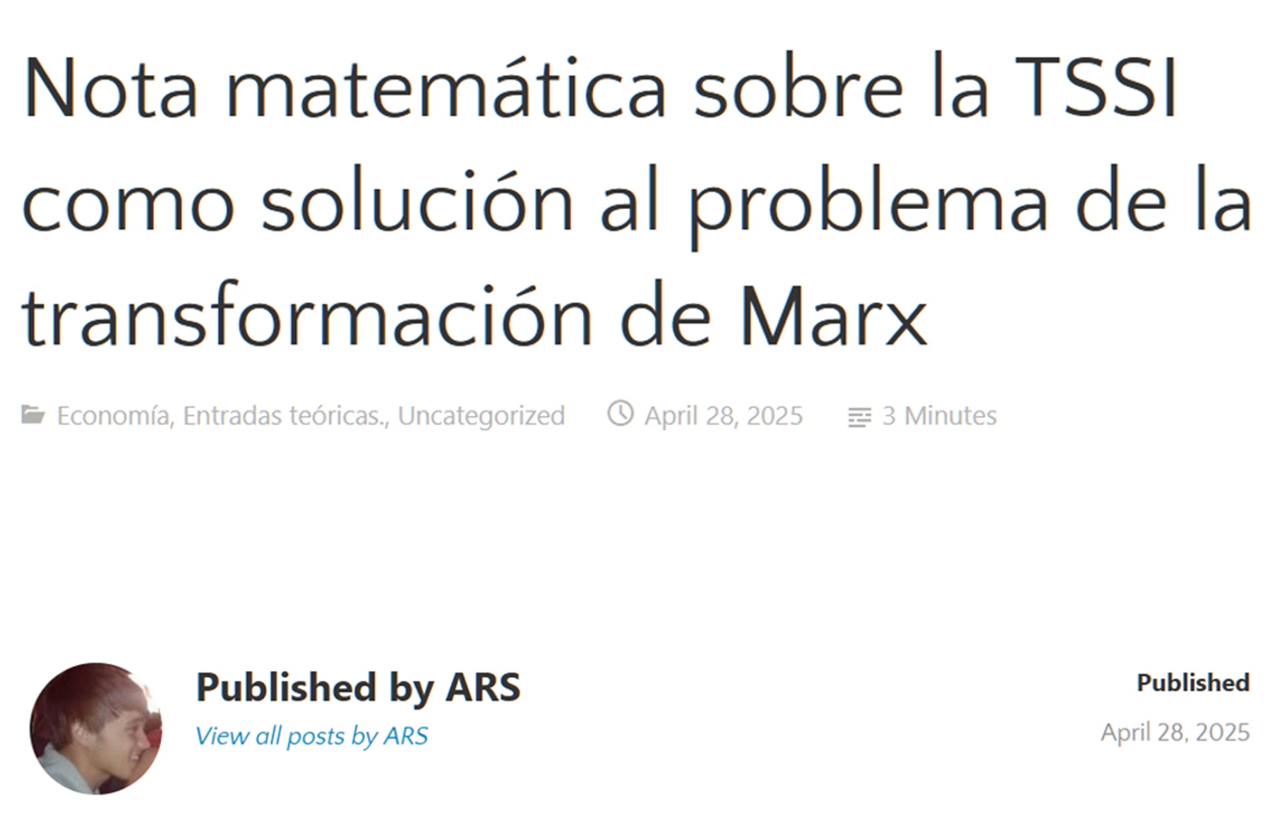 Because of all this, I have no citation information and no links other than https://alvaroromaniega.wordpress.com/2025/04/28/nota-matematica-sobre-la-tssi-como-solucion-al-problema-de-la-transformacion-de-marx/ . So as I said, “I have to cite the current version that readers can access.”