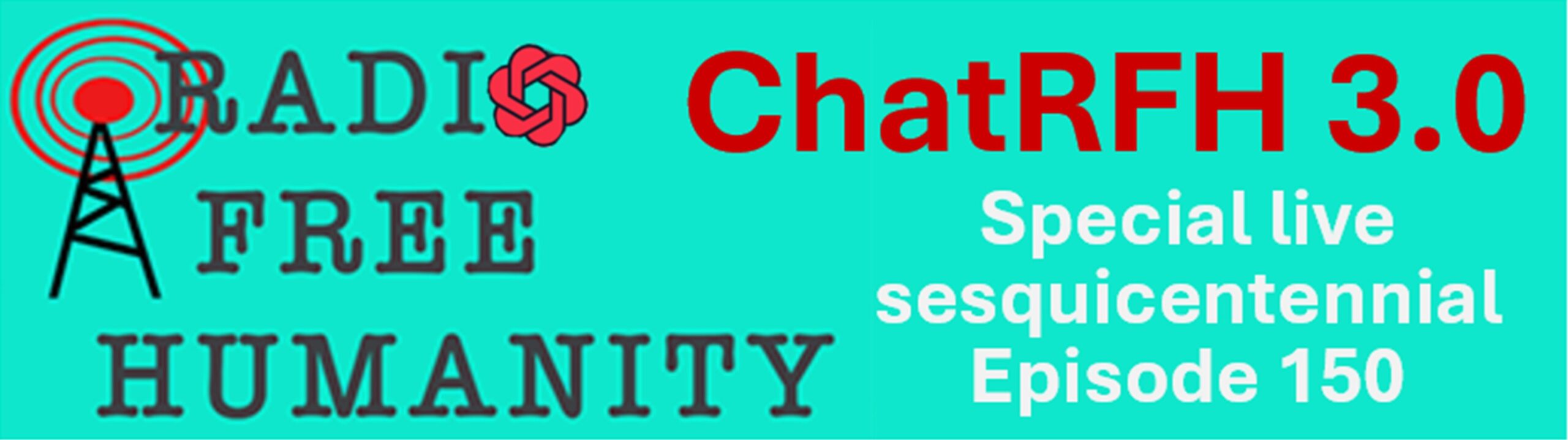 Now, more than six years later, Radio Free Humanity is approaching its 150th episode. Continuing a tradition from two years ago, when we celebrated our 100th episode, and last year, when we celebrated Ep. 125, we will commemorate the milestone with a live chat: ChatRFH 3.0—Special Live Sesquicentennial Episode of Radio Free Humanity.