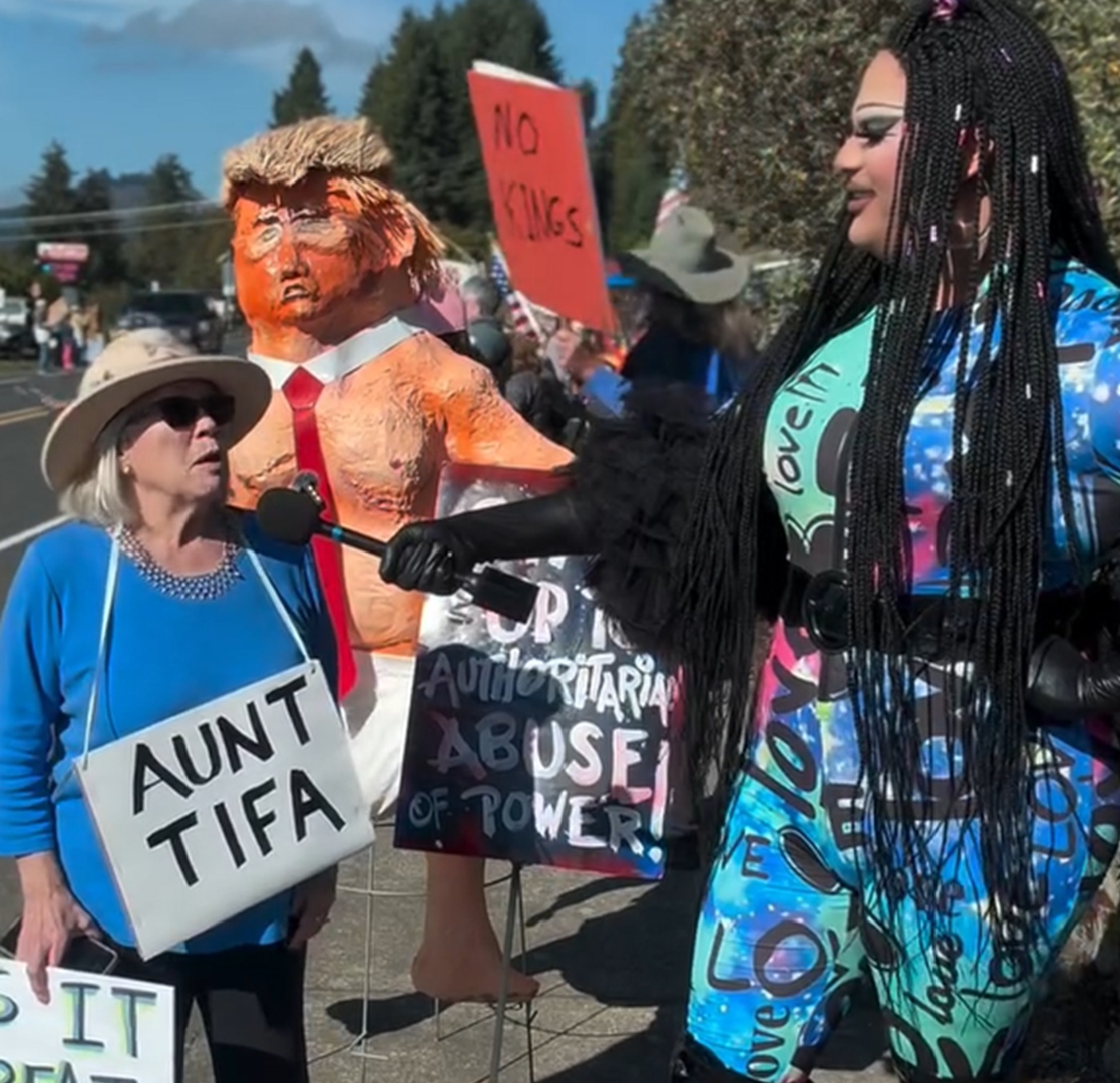 In the week leading up to No Kings 2, the Speaker of the House, Mike Johnson, said that the event would be attended by “the antifa crowd, the pro-Hamas crowd, and the Marxists …. It’s an outrageous gathering for outrageous purposes. All this has gotta come to an end.” Trump posted AI-generated videos mocking the events, including one in which he literally spewed shit over the country and on the protesters.
